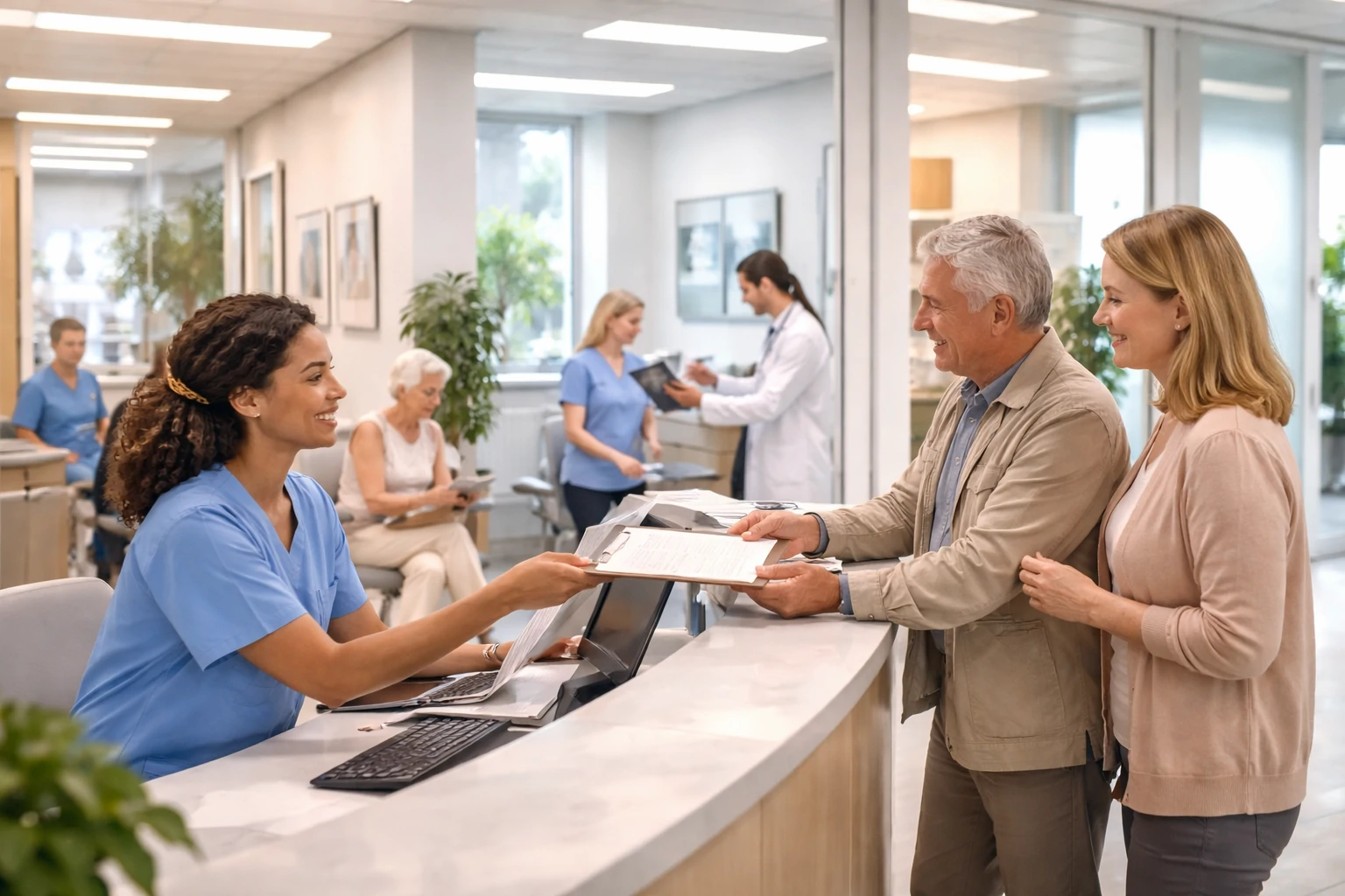 Visits follow a clear process. Patients check in at the front desk or kiosk. Staff verify details and guide patients to waiting areas.