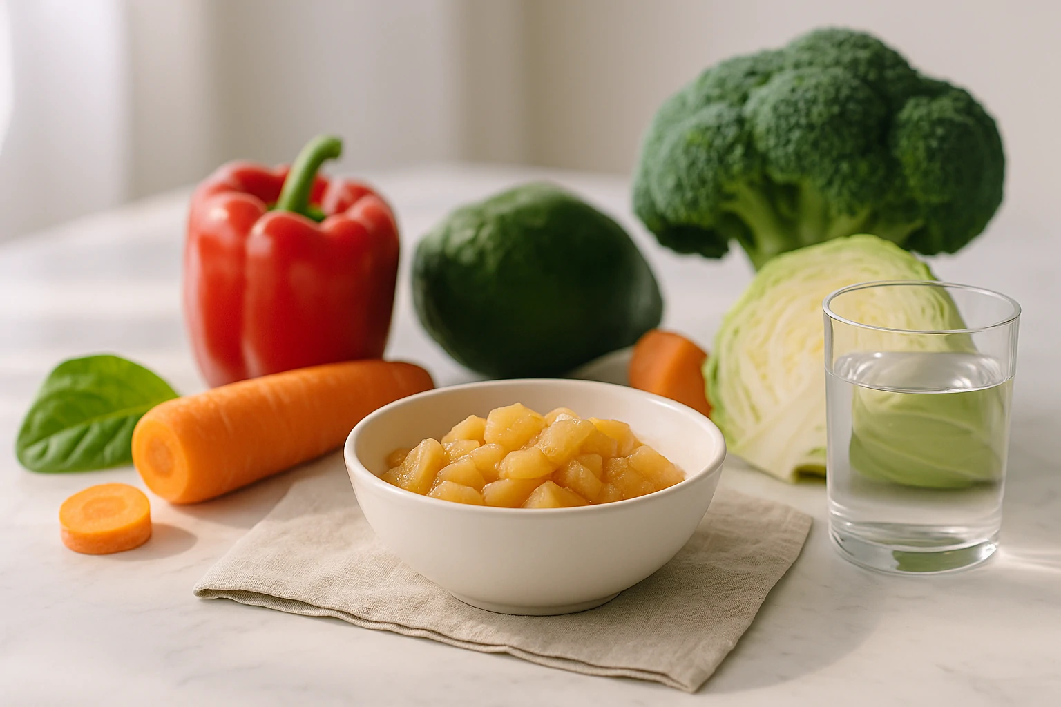 Start with stewed apples. Add water, veggies, rest, and calm steps. Health does not come in one day. Build it one small habit at a time. Let your gut grow stronger each day.